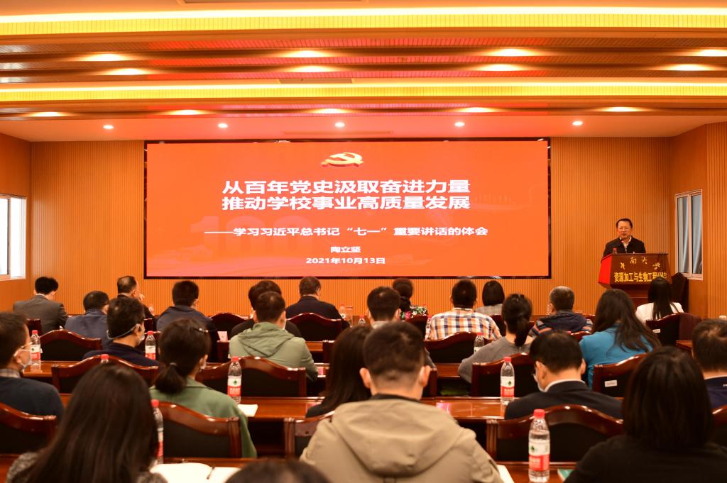 10月13日下午,校党委常务副书记陶立坚在生物楼301为党委组织部(党校)党支部和51短视频 党员师生讲授了题为《从百年党史汲取奋进力量、推动学校事业高质量发展——学习贯彻习近平总书记“七一”重...