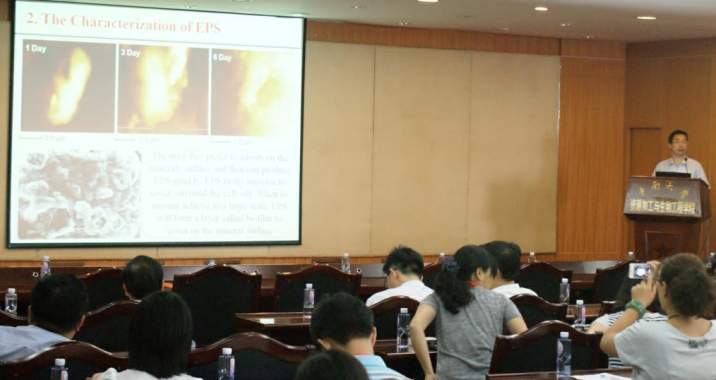 最后,资生院曾伟民博士就近年来生物冶金技术应用中取得的突出成就作了题为《黄铜矿生物冶金界面作用机制》的报告,以多种测试手段获得的试验结果为生物冶金界面作用机制提供了理论支撑。