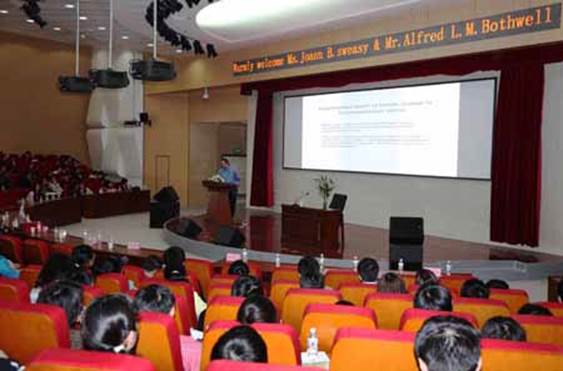 学术报告上,JoannaB. Sweasy 教授、Alfred L.M.Bothwell 教授先后作了题为“The roleof DNA Polymerase beta in oncogenesis”和“Humandiseases examined in novel in vivohumanized mouse models”的学术讲座。他们分别从各自的研究领域展开讲述,为大家介绍国际前沿的最新进展,并耐心而详细地回答了部分研究生提出的代表性问题。
