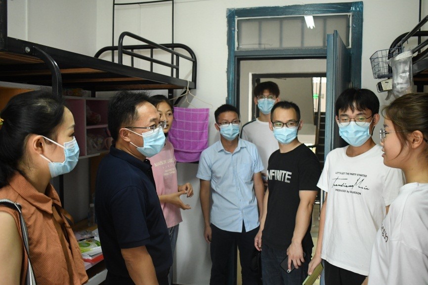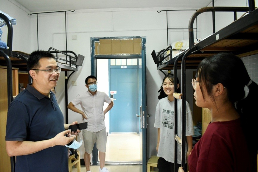 党委委员、辅导员、班导师对2021级本科新生进行了连续两天的寝室走访,向新生表以慰问关心。