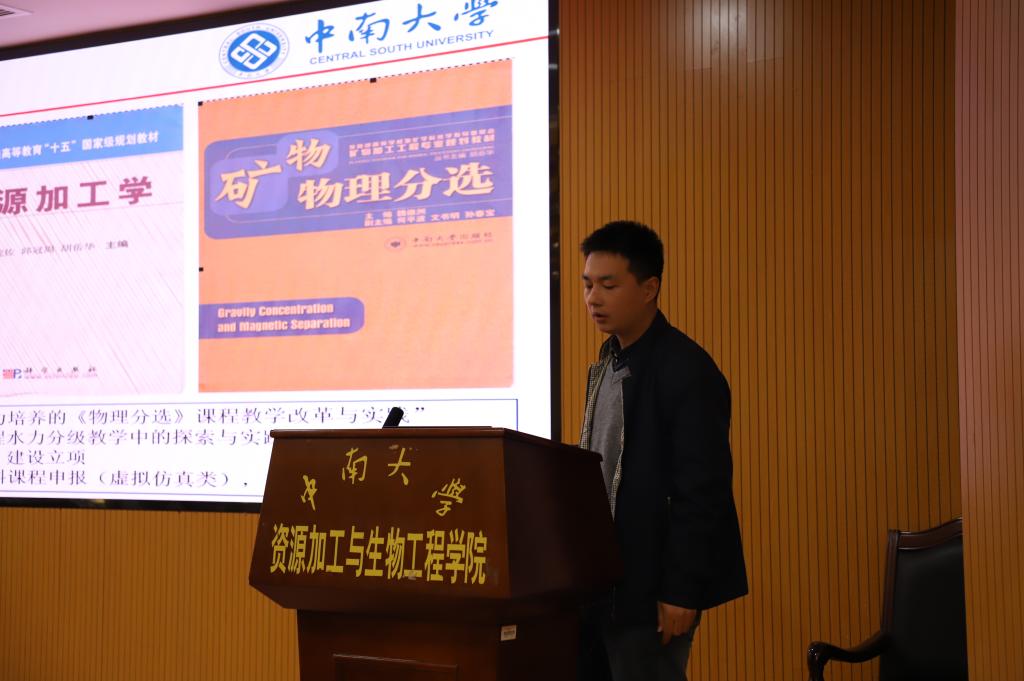 卢东方老师介绍了将物理分选在资源分离和提取中支撑国家重大工程实例、教师前沿科研成果和国内外先进物理分选技术融入课程教学和实践案例分析过程中的情况。陈攀老师从矿物加工生产实习入手,通过现场教学与安全教育,引导学生正确认识选矿厂技术发展其实就是社会发展历程的索引,技术的进步离不开国家发展与强大。郭宇峰老师通过构建由“学科前沿+基础知识+科研案例+生产实例”组成的立体式教学内容,结合“中国冶金材料大讲坛”等院士论坛、专家报告,建设学科前沿资源库,展现了专业美好愿景。张晨阳、韩海生、张元波、曹建、彭志伟、甘敏、饶明军、王艳红等老师也就自己负责的课程思政建设项目做了精彩的答辩。