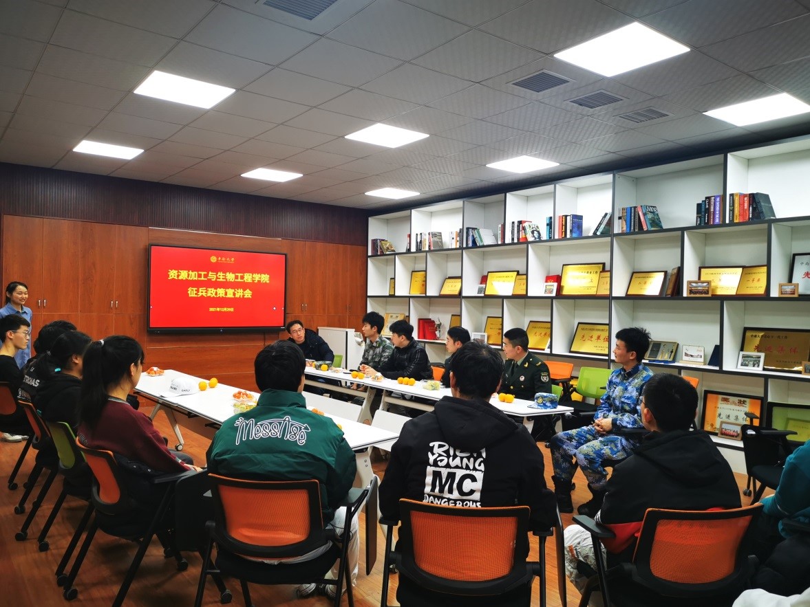 在生物楼101召开2022年征兵政策解读交流会,学院党委副书记朱忠平、征兵专干刘畅,退役士兵姚仁福、周文韬、赵志强、谢彪、雷鹏涛出席会议并作分享交流。学院14名意向入伍同学积极参与会议。