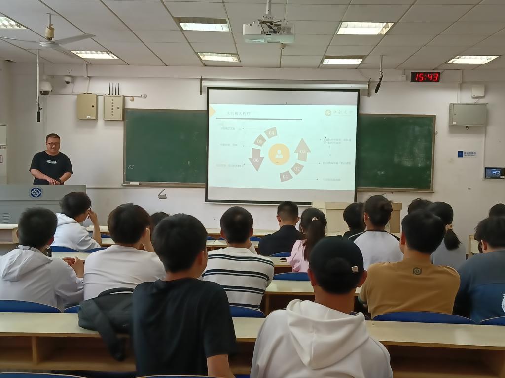 何明强以自身项目为例,系统地展示自己科研过程,为同学们指明项目开展方向,并引导大家参与科研,营造了浓厚的科研氛围。赵心怡针对选题的来源与注意事项提出选题应具有“创新性”与“可行性”,帮助同学们更好的明确选题方向。刑书博主要针对“团队组建,比赛流程,注意事项”展开交流,并建议大家充分利用周围资源,完善自身项目。学长学姐们的分享令同学们受益匪浅,充分激发了同学们的科研热情。