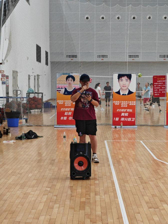 中场休息环节,双方各邀请队内一位女生上场进行了投篮比赛,无机2202班卢中昊为现场球员和观众带来歌曲《晚安》,矿物2301班冷鑫军带来歌曲《像风一样》。