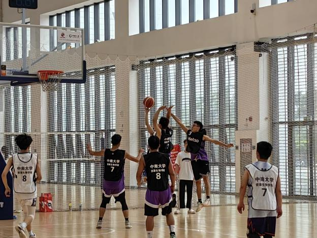 下半场开始,本科生2020级矿物联队一改守势,在默契的配合下,向硕士生矿物联队发起猛烈进攻,随着两次三分落袋,成功将比分追回,引场外连连欢呼。