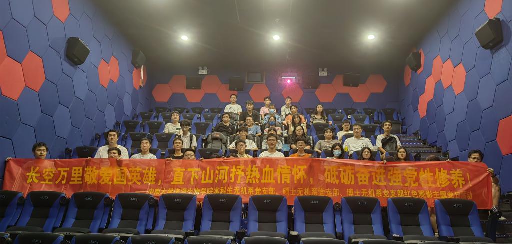 本科生无机系党支部联合硕士无机系党支部、博士无机系党支部以“长空万里敬爱国英雄,直下山河抒热血情怀,砥砺奋进强党性修养”为主题,组织党日活动,观看爱国电影《长空之王》。
