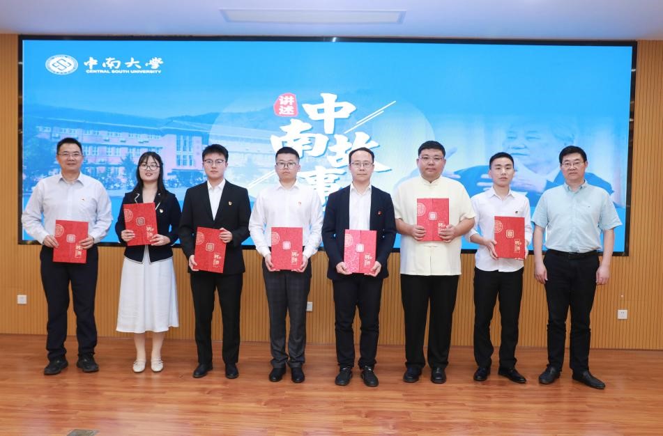 校党委副书记付刚华老师为本期“讲述·中南故事”宣讲团成员颁发聘书。“讲述·中南故事”系列主题活动立足中南大舞台,用生动鲜活的事例引发听众共鸣,弘扬以爱国主义为核心的民族精神和以改革创新为核心的时代精神,形成了维度广、题材新、质量高、效果佳的育人平台。