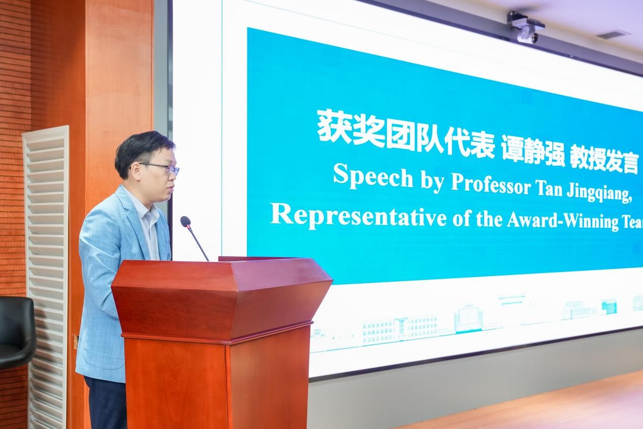 地球科学与信息物理学院副院长谭静强教授作为获奖教师代表发言。他分享了团队在低碳技术研发中的探索历程,并对学校与力拓集团的支持表示感谢。