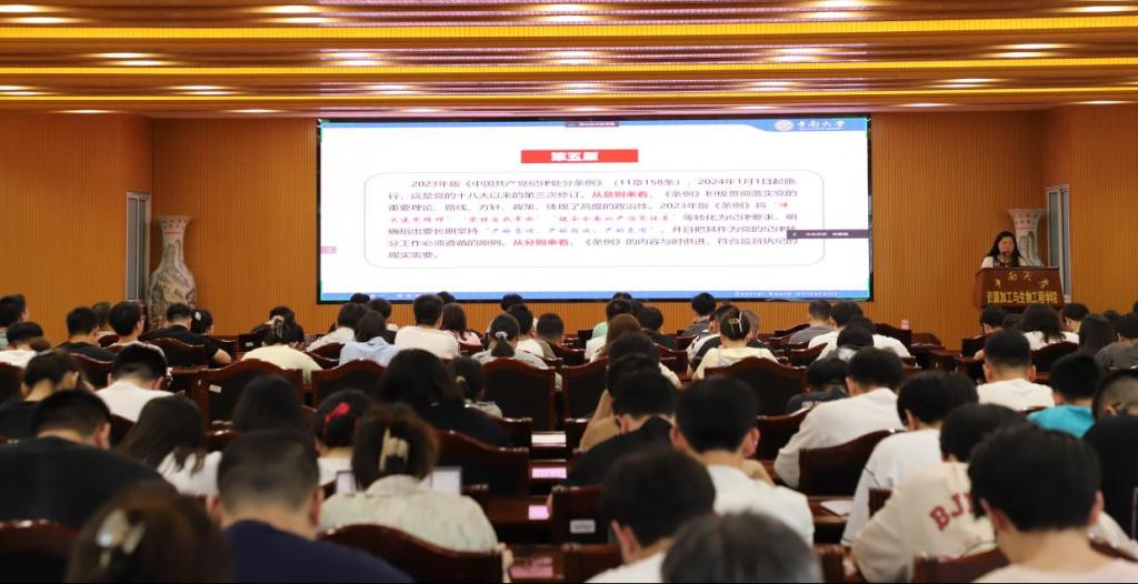 党委书记范晓慧为全院学生党员讲授了题为“《中国共产党纪律处分条例》(以下简称《条例》)解读”的党纪学习教育专题党课。全院500余名学生党员在生物楼301报告厅主会场和2个分会场及线上参加学习。